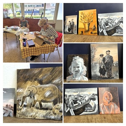 De workshop startte met een uitleg over de geschiedenis, voorbeelden en technieken voor het maken van een onderschildering. Daarna werd aan de hand van zelf te kiezen onderwerp met aardkleuren (bijvoorbeeld omber, oker, gebrande sienna) of zwart en wit de onderschildering gemaakt.
